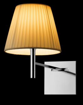 K TRIBE WALL SOFTThis wall mounted fixture features an integral dimmer switch offering four level light adjustments. The wall plate, in polished chrome plated alloy, supports the 'swing' arm and pleated fabric shade diffuser. There is an inner diffuser in opal polycarbonate to shield the lamp from view. Family of luminaires for diffused lighting. Ideal for bedside lighting providing individual control. [The dimmer system may be by-passed for connection to a dimming circuit.]