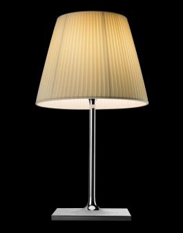K TRIBE TABLE SOFTThis table lamp for diffused lighting is a member of the K Tribe family of luminaires. The base and stem are polished aluminium and alloy with an inner diffuser in opal polycarbonate and an outer shade of either pleated fabric [illustrated] or translucent PMMA. 2 sizes T1 31.5cm dia shade x 56cm height overall T2 39.5cm dia shade x 69cm height overall. Electronic dimmer in-line. For diffused lighting. Family of luminaires