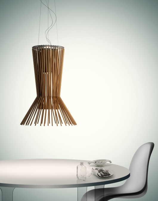 ALLEGRETTO VIVACEFor 2009 Foscarini have introduced three smaller versions to complement the large scale Allegro family of pendant fittings. Formed from aluminium rods, individually suspended from a circular chassis, they create sculptural light objects with the light source illuminating the intricate structures from within and creating a concentration of light upwards and downwards. Family of luminaires.