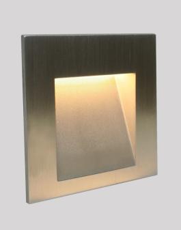 IMPACT LEDA small, low level fitting with torsion springs for flush recessed installation into walls, for path lighting, steps and floor washing. The body is a precision aluminium or bronze casting. The light aperture has a sealed spreader lens and an angled reflector surface to direct the light distribution downwards without glare. Suitable for use outside or damp areas. The light source is a single 3Watt LED with an integral heat sink rated at 13.8 lumen/watt [excluding driver]. The LED/heat sink module is replaceable. Colour temperature warm white [3000K] Wall boxes and building in accessories available.