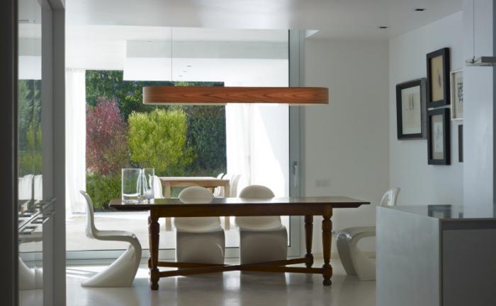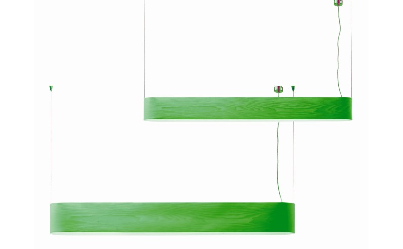 I-CLUB PendantA slim pendant suspension and a member of the I-Club family of luminaires. A translucent timber veneer body with an opal perspex diffuser lighting upwards and downwards with a soft diffusing effect. The body is suspended from two wire suspensions with a separate rose and flex outlet. In a range of natural timbers - American White Wood, Cherry, Beech and stained veneers in the colours below. Two sizes L 136 x H 15 L 170 x H 12 Energy efficient fluorescent light source. Part L compliant