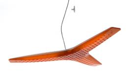 AIRCONLightweight polycarbonate structure with three arms and with an opal diffuser and translucent coloured diffuser. On a wire suspension that allows the fitting to be tilted. Suspension 200cms Energy saving product for direct downwards lighting and/or diffused upwards lighting according to the position of the diffusers facing up or down. Part L compliant.