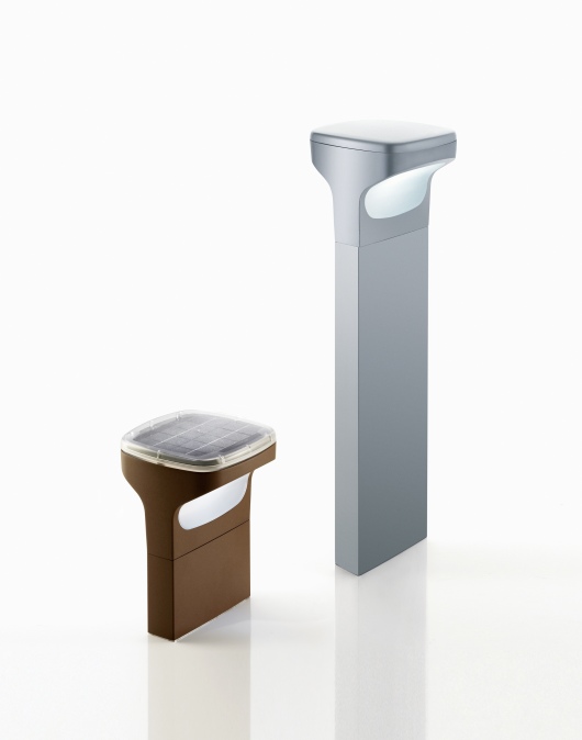 SKYA range of outdoor bollards using the latest technology. The body is die-cast aluminium and with a polycarbonate diffuser. The fitting is availble in either a wire-free or wired version and uses LED light sources. Versions with fluorescent or metal halide discharge sources are also available. The wire free LED version uses a photovoltaic cell mounted in the top converting solar energy to re-charge the battery supply for the white LED's. Energy saving product Available in two heights 28cm and 70 cm Family of luminaires