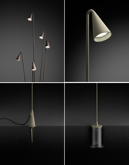 BRISAAn elegant adjustable LED garden light designed to blend in with planted areas and providing a downward pool of light for pathways, steps and directed onto planting. It is available as a single stem 114cm tall or as a group of three or five stems of varying height from 67cm to 98cm. The LED driver is housed in a baseplate that can be buried in the ground or in a waterproof housing when used with the ground spike accessory.