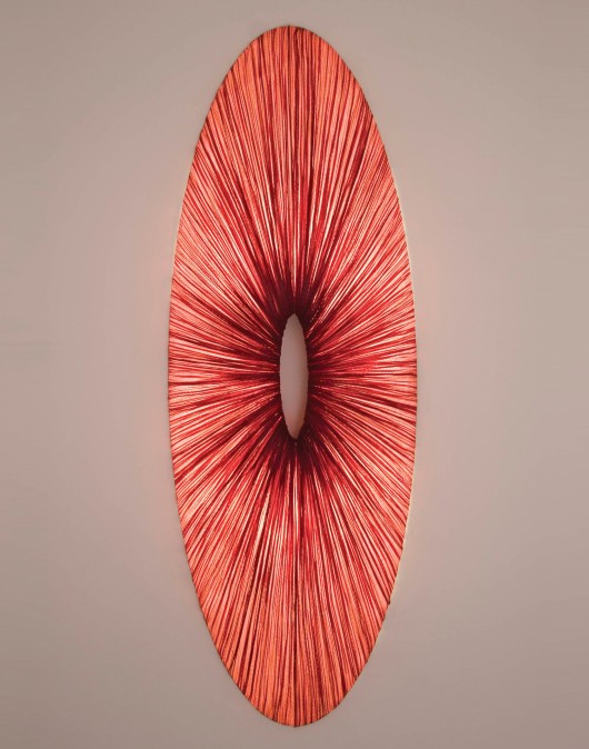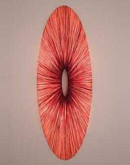 LIANAA spectacular wall or ceiling fixture from the company's "Orchestra" series, linking art and design. The crushed silk is formed over a metal frame to create a pleated textured diffuser for soft illumination. Family of luminaires The use of compact fluorescent lamps is recommended. Silk colours - Rust, Curry, Orange, Flame, Red, Dark, Gold, Silver, Smoke, Grass, Cream, Sand, Redwood, Shell, Stone, Coal. Note : The silk is hand-dyed in batches and colour matching cannot be guaranteed. Colours may fade after long periods in direct sunlight.