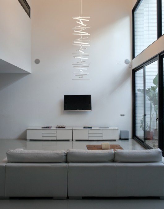 RHYTHMRhythm is an innovative pendant suspension comprising individual 'sticks' that pivot around a central point offering an infinite number of configurations. The sticks are in two lengths, 47cms and 87cms and are produced in groups of 10, 20, 30 or 40 modules. each stick contains a linear LED strip 24V 3.2W and 6.4W, with a polycarbonate diffuser. The LED driver mounted in the ceiling rose is dimmable 1-10V and the rose may be surface mounted or recessed. The pendant can be used horizontally or vertically and is available in two matt lacquer finishes.