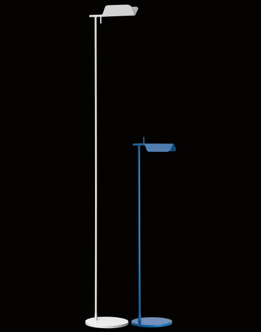 TABThe design of this is floor light is simple and direct. The adjustable head with porcelain reflector is in die-cast aluminium as are the base and stem, all with painted finish. There is an on-off switch on the 200cm long power cord. Table version also. For direct adjustable lighting.