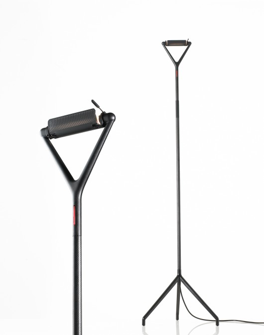 LOLALight in weight and appearance. This floor standing lamp is easy to move around and has a telescopic stem for height adjustment and a rotating reflector head. Family of luminaires. For direct and uplight indirect lighting.