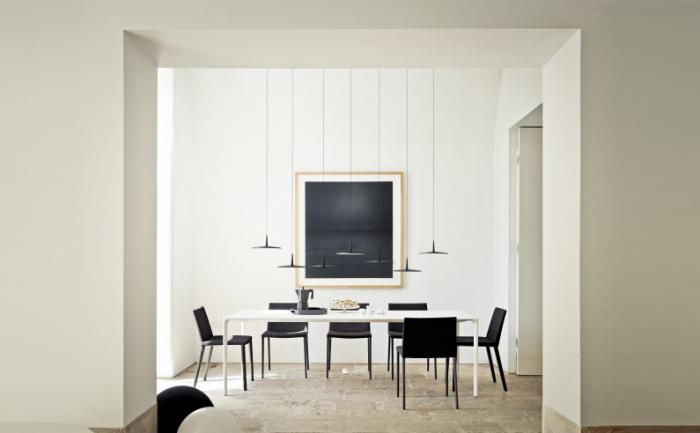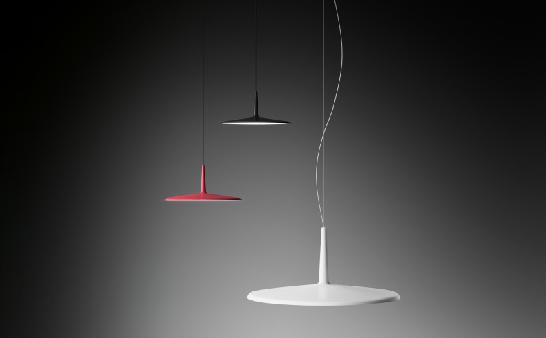 SKAN pendantAn elegant pendant suspension fitting of minimal design with an LED light source for direct downward distribution. The fitting is available in two shade sizes 30cm diameter and 60cm diameter with a maximum suspension height of 200cms. The 30cm fitting has 1 x 10W LED 500mA. The 60cm fitting has 1 x 12.3W LED 700mA. Both have opal acrylic diffusers. There are three standard colours. SPECIAL colours from the complete RAL range are available for a minimum order of 5 pieces.