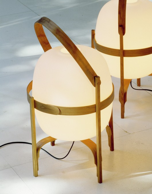 CESTAJapanese inspired lantern with a cherry wood frame enclosing an opal glass diffuser. In-line dimmer. For diffused lighting.