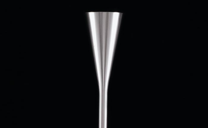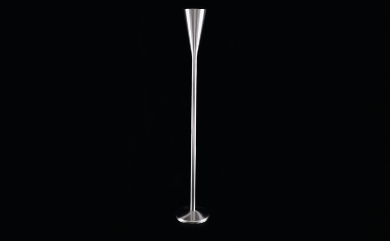 LUMINATORA classic floor lamp with dimmer. Fontana Arte are one of the oldest luminaire manufacturers and the designer of this lamp Pietro Chiesa was one of the greatest exponents of Italian Art Deco and his work was widely exhibited throughout the 1930's and 1940's. As his best known light, the Luminator with its elegant flute shape, is one of the earliest examples of the introduction of indirect light into the domestic environment, a technique only previously employed in photography because of its uniform and shadow free effect. The body is brass and is finished in nickel plate or black. Uplight for indirect lighting.