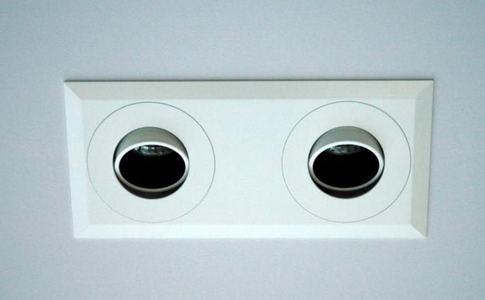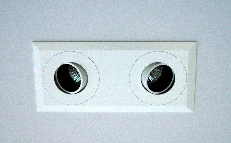 OCTO 50 [SOLO+SOLO] DISCONTINUEDFully recessed double directional downlight. Individual adjustment up to 30 degrees from vertical and horizontal rotation through 350 degrees. Low glare baffle for comfort. Simple lamp changing without disturbance to the ceiling. Made in U.K. For direct and directional lighting using narrow, medium and flood beams. For wall washing, corner lighting and lighting both sides of corridors.