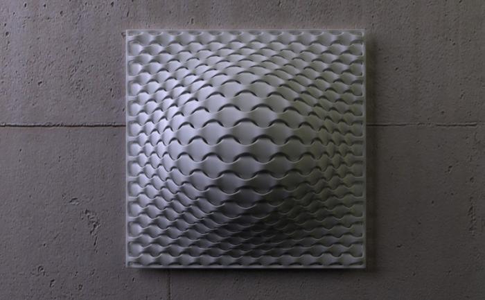 VASARELY DISCONTINUEDA wall or ceiling fitting inspired by the work of the Graphic Artist Victor Vasarely. The softly moulded diffuser in laser formed polyamide is supported on a simple frame of the same material and uses the texture and form to play with light and shade. Victor Vasarely was born in Hungary in 1906 and is one of the first exponents of Optical Art or 'Op-Art'. His painting Zebra was created in the 1930's and is considered to be one of the earliest examples. Optical Art is a method of painting concerned with the interaction between illusion and the two dimensional picture plane giving the impression of movement, vibration, warping, and distortion. Bridget Riley is the best known British artist using this form of expression. REGRETTABLY THIS ITEM IS DISCONTINUED