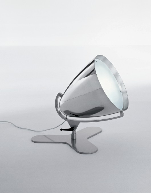 FARO BASELow floor or table lamp with a swivel adjustment on a steel base. Aluminium shade with diffuser. In-line dimmer. Two sizes 35cm [illustrated] and 28cm For diffused wash lighting.