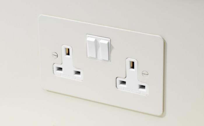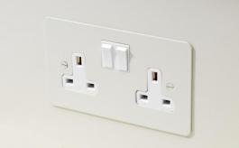 F&L PAINTED RANGEA range of accessories including, 13Amp sockets [illustrated], 5Amp sockets [illustrated], 2Amp sockets, telecom, data, audio, fused connection. White or black inserts. Plates are etch-primed for decoration. Flat plates 0.18cm thick Require BS 3.5cm deep flush wall box.