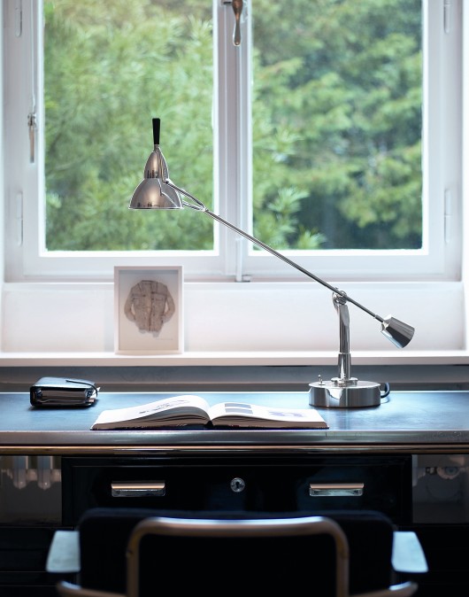 BUQUET TABLE LAMP EB 28This is the single pivot version of the Buquet table lamp with the same superb qualities of fine engineering and hand-built craftsmanship. Finished in silver plating, all lamps are consecutively numbered. For localised direct lighting.