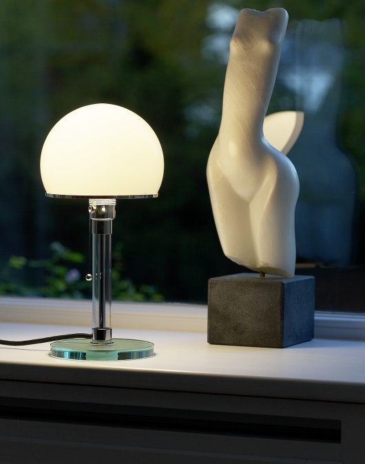 WG 24A classic table lamp by this German designer who started his apprenticeship in silverwork. In 1923 he went to the "Bauhaus" in Weimar and became a widely known industrial designer. His work had a great influence on the development of American design through his association with the Metropolitan Museum's exhibition of Contemporary Industrial Design in 1930 and he has his own Museum in Bremen, the Wilhelm Wagenfeld Haus. The lamp is a combination of nickel plated metal and clear and opal glass. Each lamp is consecutively numbered.