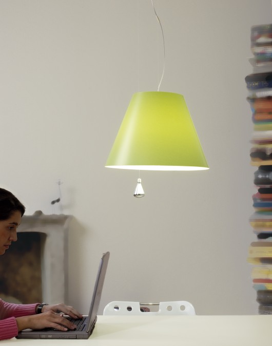COSTANZAAn elegant, minimal and lightweight pendant comprising an silkscreened polycarbonate diffusing shade, available in white or a range of colours and with a simple rise and fall action using a stainless steel counter weight. Drop 100/150cm or 100/250cm Family of luminaires. Available also in the larger "GRANDE" version, shade dia 70cm and smaller COSTANZINA version, shade dia 26cm.
