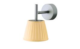 ROMEO BABE SOFTA small wall sconce for soft diffused lighting comprising a pleated fabric shade with an acid etched glass inner diffuser. The grey painted die-cast aluminium support is mounted on an injection moulded wall box. Family of luminiares.