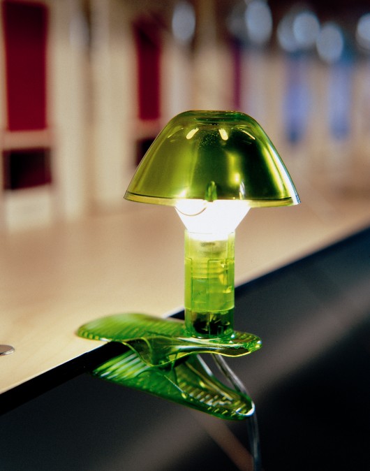 TOPOLINAA clean simple clip-on lamp that was recognised by the Maison & Objet as one of the best lighting products of 2000. It has a transparent polycarbonate body in a range of colours with a metal reflector to improve the lighting performance. The polycarbonate spring clip is shaped making it possible to fix to shelves and tubular structures.