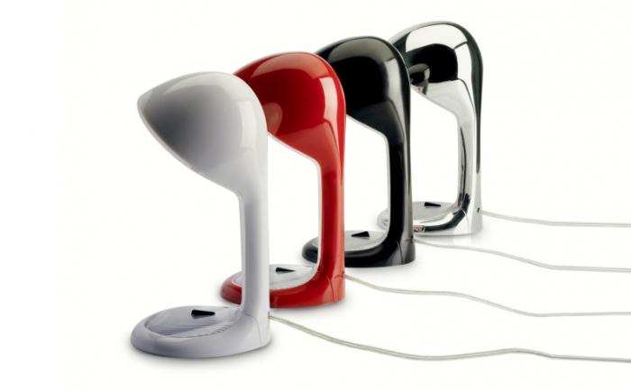 CLEAA small table lamp inspired by the "pop-art" culture and features reminescent of the 60's. Made from injection moulded polycarbonate, it has an integral switch in the base and is available in a range of finishes. For localised task lighting.