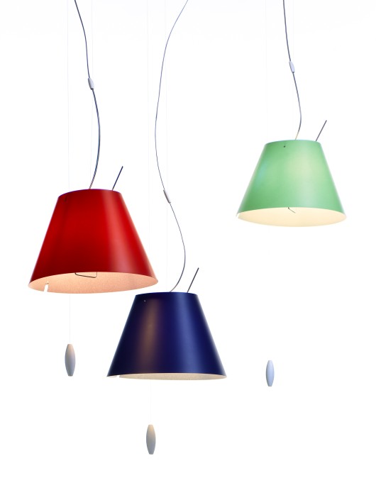 COSTANZINAA classic, lightweight pendant suspension with a polycarbonate silkscreened shade available in white or a range of translucent colours. The simple rise and fall action suspended from the white ceiling rose has a small counterweight to balance the height adjustment . Suspension height Minimum 100cm Maximum 250cm For general diffused lighting. Family of luminaires.