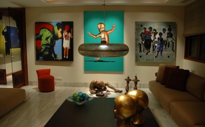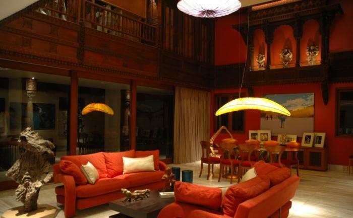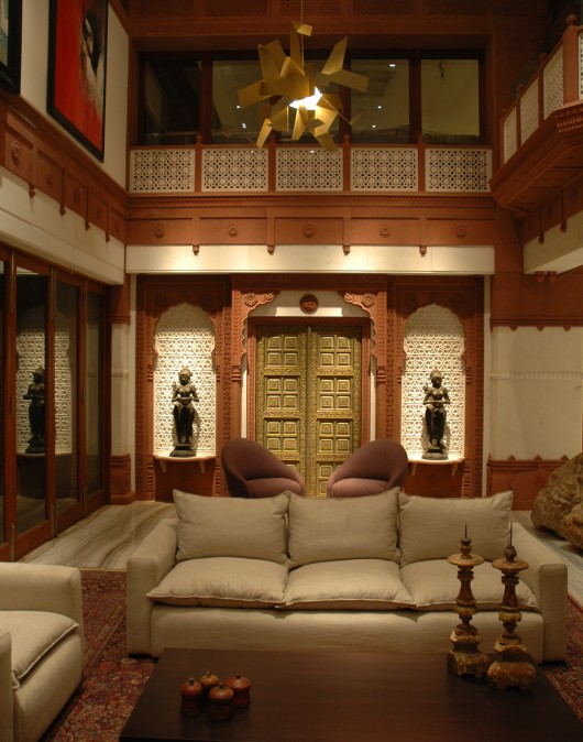The striking traditional setting of the interior has been skilfully offset by the owners fine and varied collection of contemporary Indian artwork. The owner's involvement and enthusiasm also provided a clear and personal contribution leading to the final design solution.